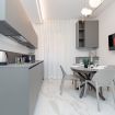 L’appartamento comprende: una zona living con cucina a vista, una camera da letto e un bagno.