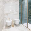 -Il bagno, raffinato e chic, è decorato con piastrelle verde smeraldo che creano un piacevole contrasto con gli arredi.
