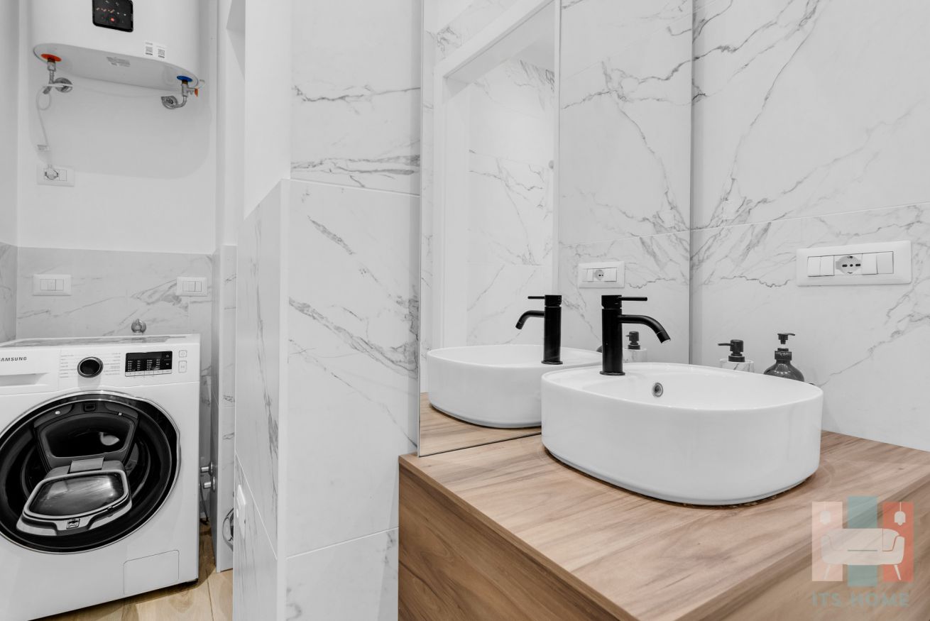 La zona living dispone di TV e di un comodo divano letto matrimoniale, ideale per ospitare fino a quattro persone. La cucina è completamente attrezzata con forno, frigorifero, freezer e macchina del caffè, rendendo l’alloggio adatto sia a soggiorni brevi che prolungati.