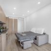 L'appartamento è composto da una zona living con cucina a vista, una zona notte, bagno e balcone.