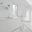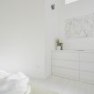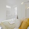 Ad illuminare e arieggiare la stanza ci sono ampie finestre che si affacciano sulla corte interna dello stabile.