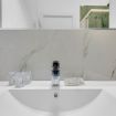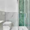 -Il bagno, raffinato e chic, è decorato con piastrelle verde smeraldo che creano un piacevole contrasto con gli arredi.