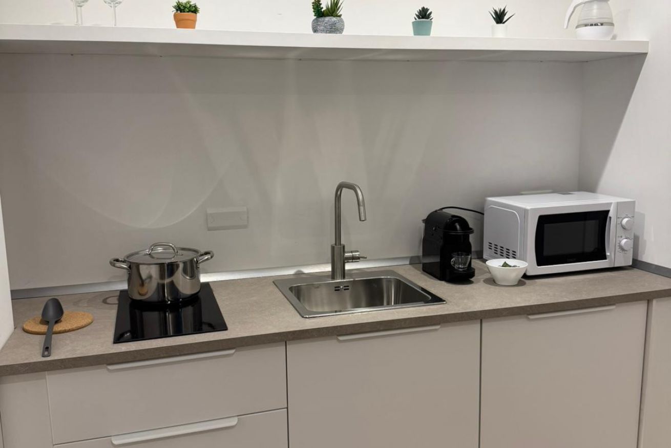 • Cucina moderna su misura: Completamente nuova e funzionale, con finiture in bianco e legno, dotata di piano cottura, micoonde, frigorifero, utensili, stoviglie, bollitore e macchina del caffè Nespresso. Perfetta per preparare colazioni, pranzi e cene in totale comodità .