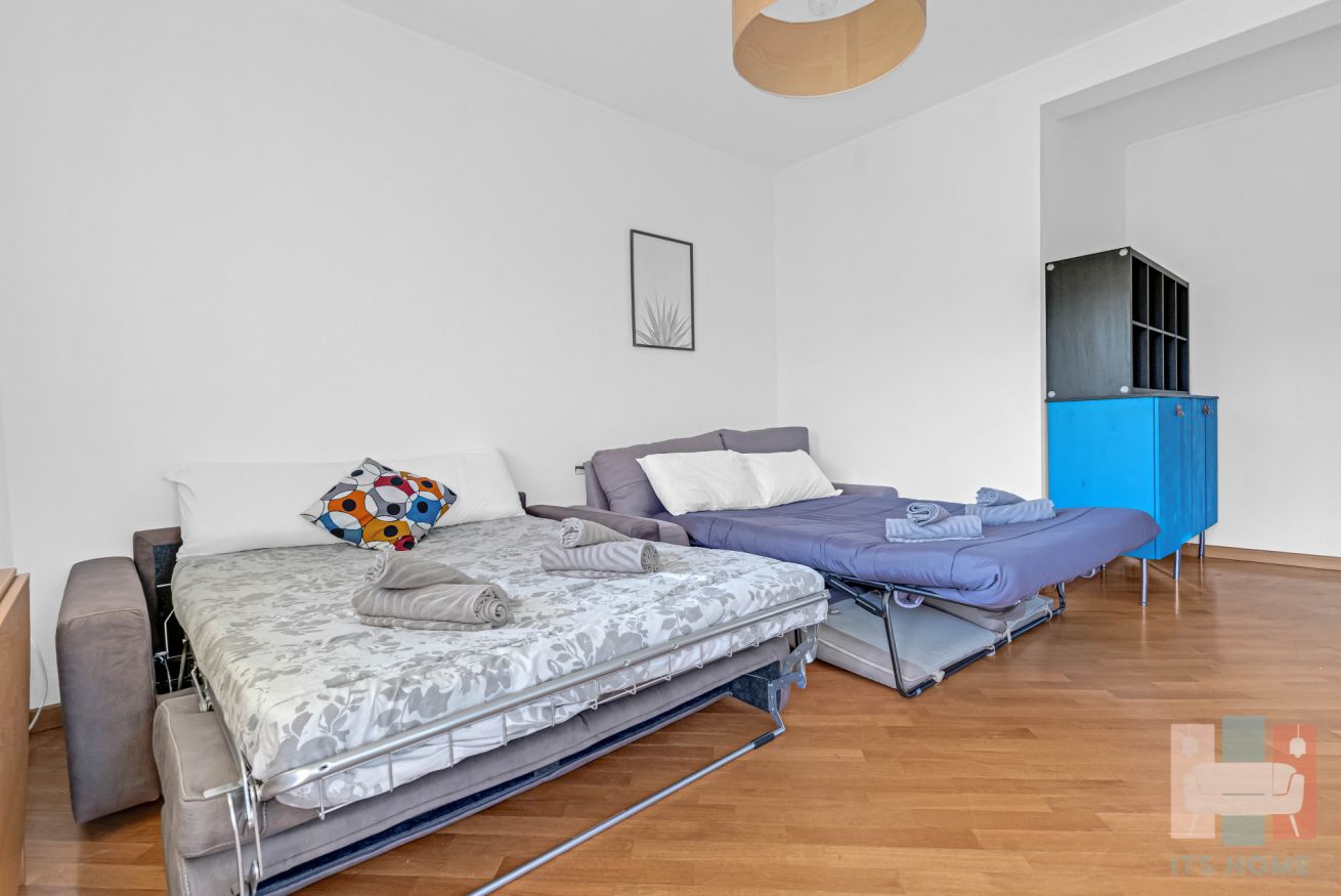 -La zona living, luminosa e accogliente ☀️, rappresenta il cuore della casa: due divani trasformabili in comodi divani letto completati da biancheria, piumoni e cuscini, una TV a schermo piatto 📺 perfetta per momenti di relax e un balcone privato 🌿 dove gustare un caffè, leggere o semplicemente osservare il quartiere.