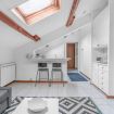 L'appartamento, dallo stile raffinato ed elegante, è molto luminoso grazie alle finestre Velux presenti in tutte le stanze.