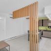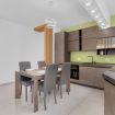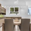 È dotata del piano cottura a induzione, forno, lavello, piatti, bicchieri, frigorifero, freezer e lavastoviglie.