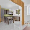 Si suddivide in: zona living con cucina a vista, 3 camere da letto, 2 bagni e un balcone.