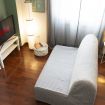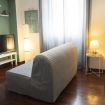 -Il soggiorno dispone di un divano trasformabile in un divano letto, una TV dove potete rilassarvi dopo una giornata impegnativa e uno spazio dedicato al lavoro con sedia e scrivania, adatto per chi lavora in smart working.