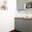 -La cucina offre tutto il necessario per cucinare il vostro piatto preferito: frigo, freezer, forno elettrico, piano induzione, lavastoviglie, piatti, bicchieri, posate, lavello, set di pentole e padelle.