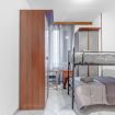 -Prima camera da letto: Molto luminosa, è arredata con un comodo letto matrimoniale, un letto a castello, completo di lenzuola, cuscini e piumone. Inoltre, troverai un’ampia scrivania, ideale per lavorare in smart working o studiare, e uno spazio per riporre i tuoi effetti personali.