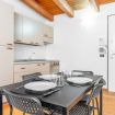 L'appartamento offre una zona living con cucina a vista, una camera da letto e bagno privato.