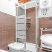 -Il bagno elegante offre una doccia spaziosa, wc, bidet, lavabo, lavatrice, asciugacapelli e asciugamani.