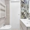 La luminosità degli spazi è accentuata dalle ampie finestre e dalla palette di colori scelta con attenzione.