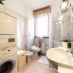 Nel bagno sono presenti: una lavatrice e una Asciugatrice, WC, bidet, lavandino, una doccia con soffione a cascata e doccino.