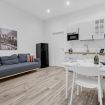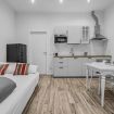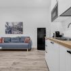🛋️ un accogliente soggiorno con cucina attrezzata e TV, perfetto per rilassarsi dopo una giornata in città