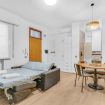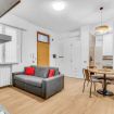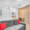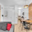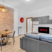 -La zona living room è luminosa grazie ai colori neutri che circondano le piastrelle a vista, dando un effetto urban. Arredata con una parete attrezzata, tavolo da pranzo, SMART-TV per rilassarvi dopo una lunga giornata di lavoro o di visita a Milano, e un divano trasformabile in divano letto.
