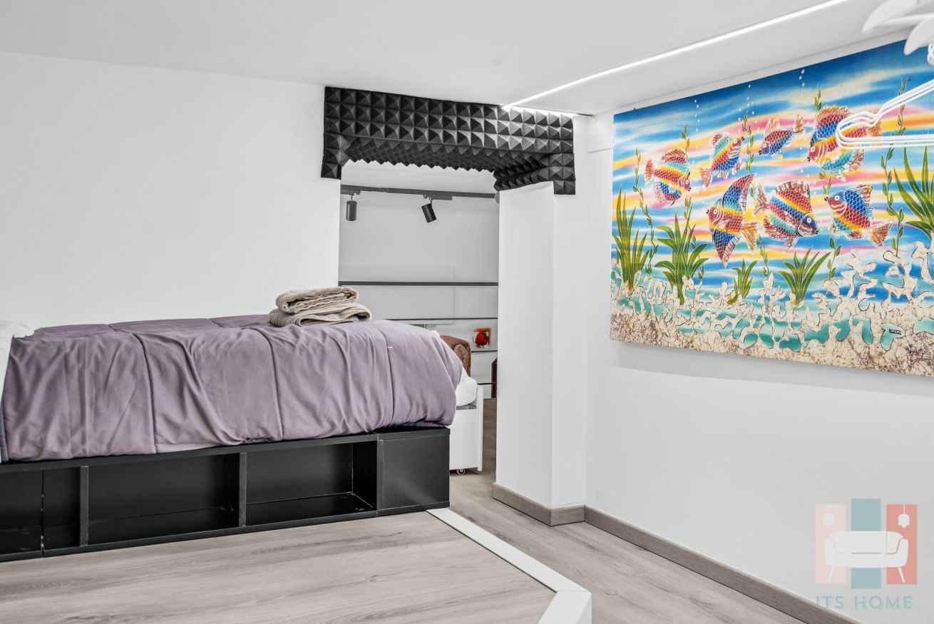 -La zona notte ospita un confortevole letto matrimoniale, completo di biancheria e cuscini e un ulteriore letto singolo. Un grande armadio ti permetterà di sistemare facilmente tutti i tuoi effetti personali 👗👔.