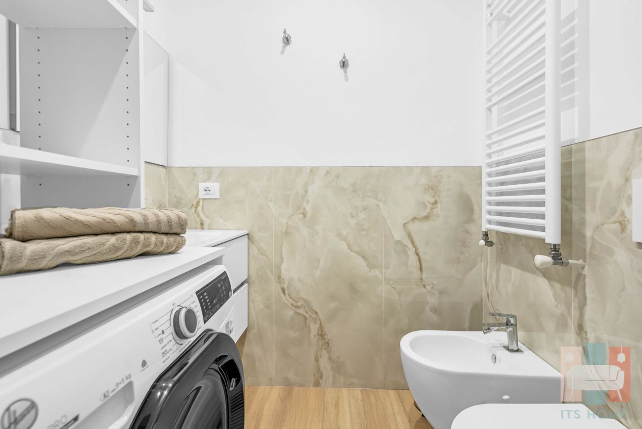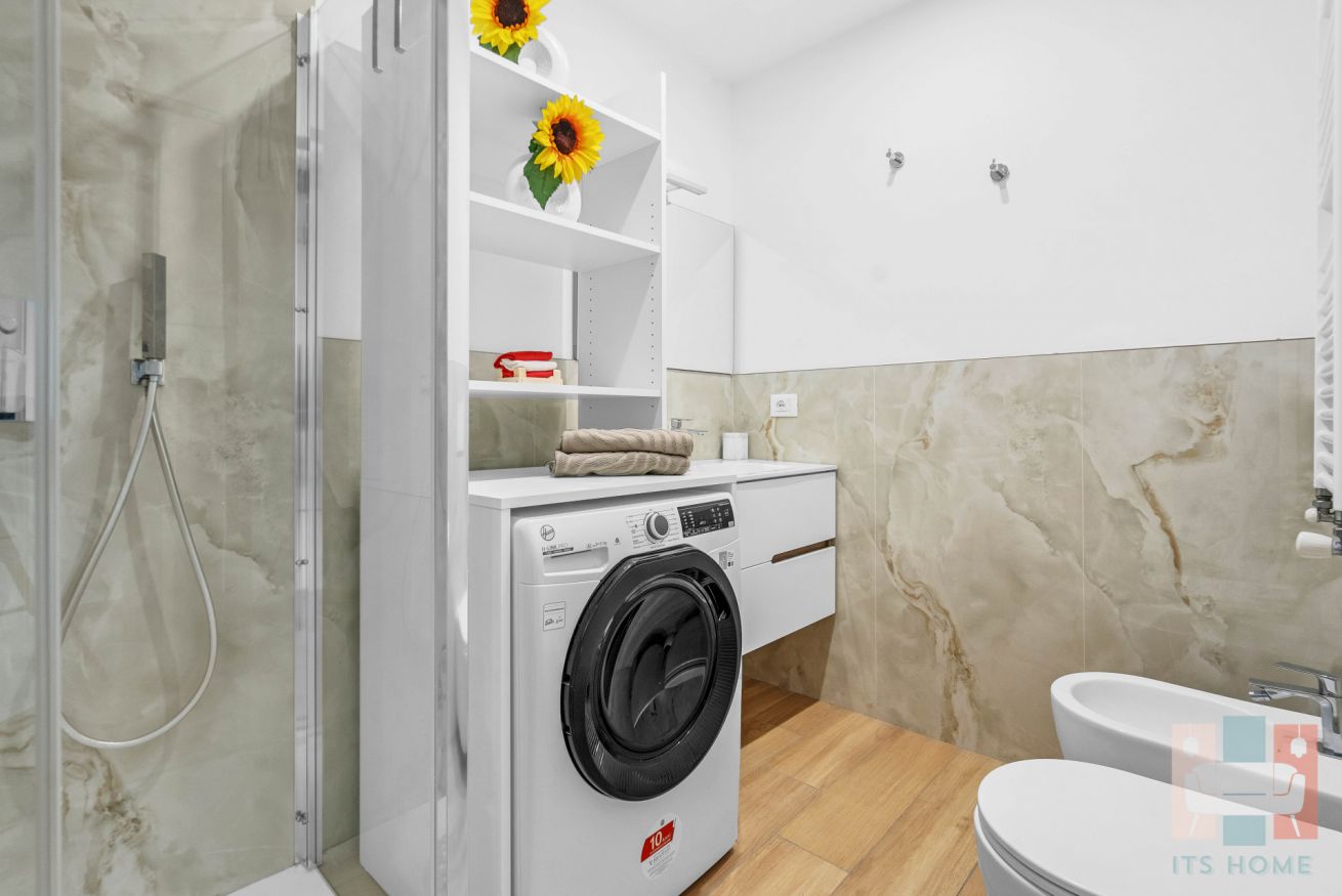 -Bagno luminoso: ampio e funzionale, dotato di doccia, lavabo, WC, bidet e asciugacapelli. Incluso anche un comodo kit di cortesia 🧴🚿.