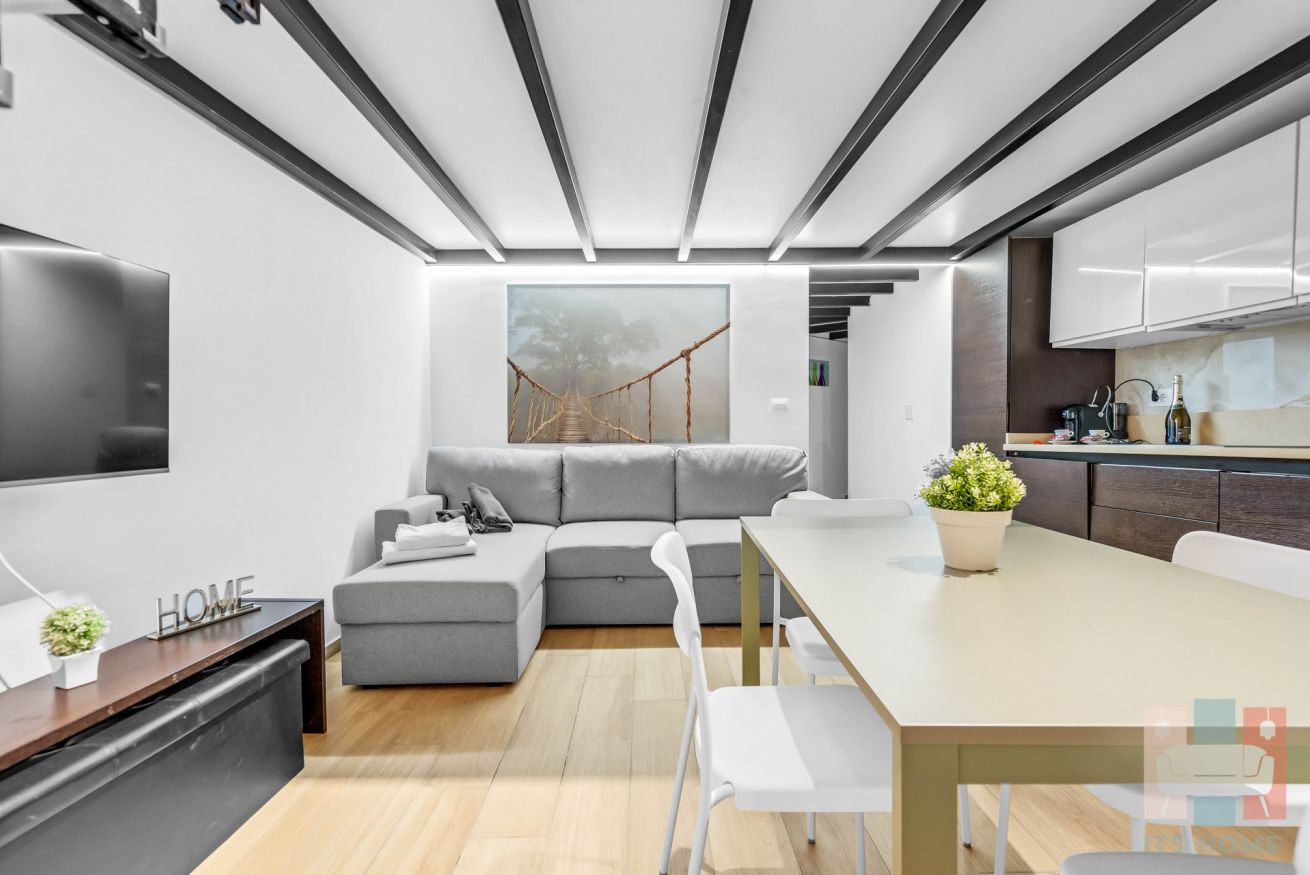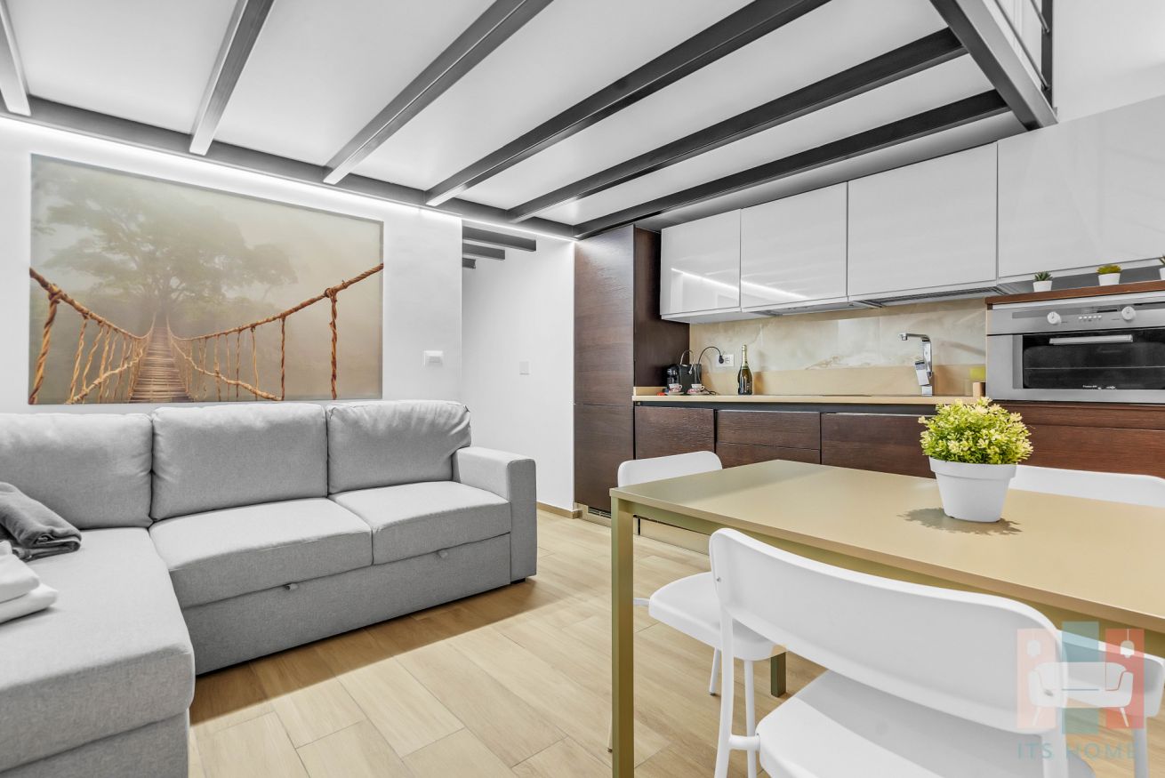 L’appartamento è disposto su due livelli, piano terra con soppalco collegati tra loro in modo armonioso.