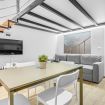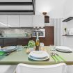 -Cucina-soggiorno open space zona living con ampio tavolo: completamente fornita per permetterti di cucinare come a casa tua. A disposizione piano a induzione, stoviglie, utensili, frigorifero, pentole, padelle, forno e lavastoviglie 🍽️👨🍳.