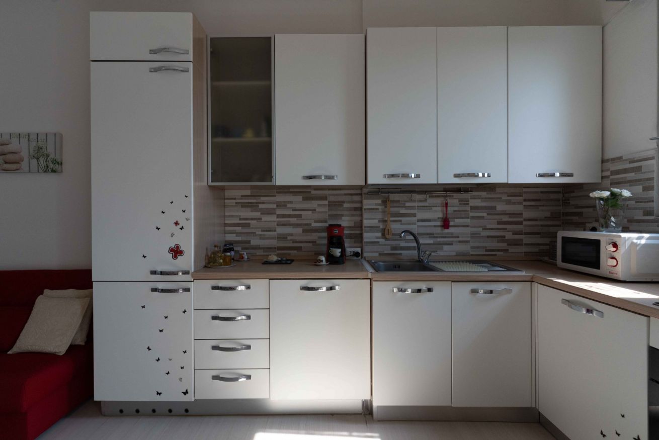 Dispone di una confortevole camera da letto, di un soggiorno-cucina con comodo divano letto e tavolo con sedie e di un bagno.