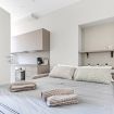 L’alloggio è composto da una luminosa zona living con cucina a vista, una camera da letto accogliente e un bagno moderno e spazioso.