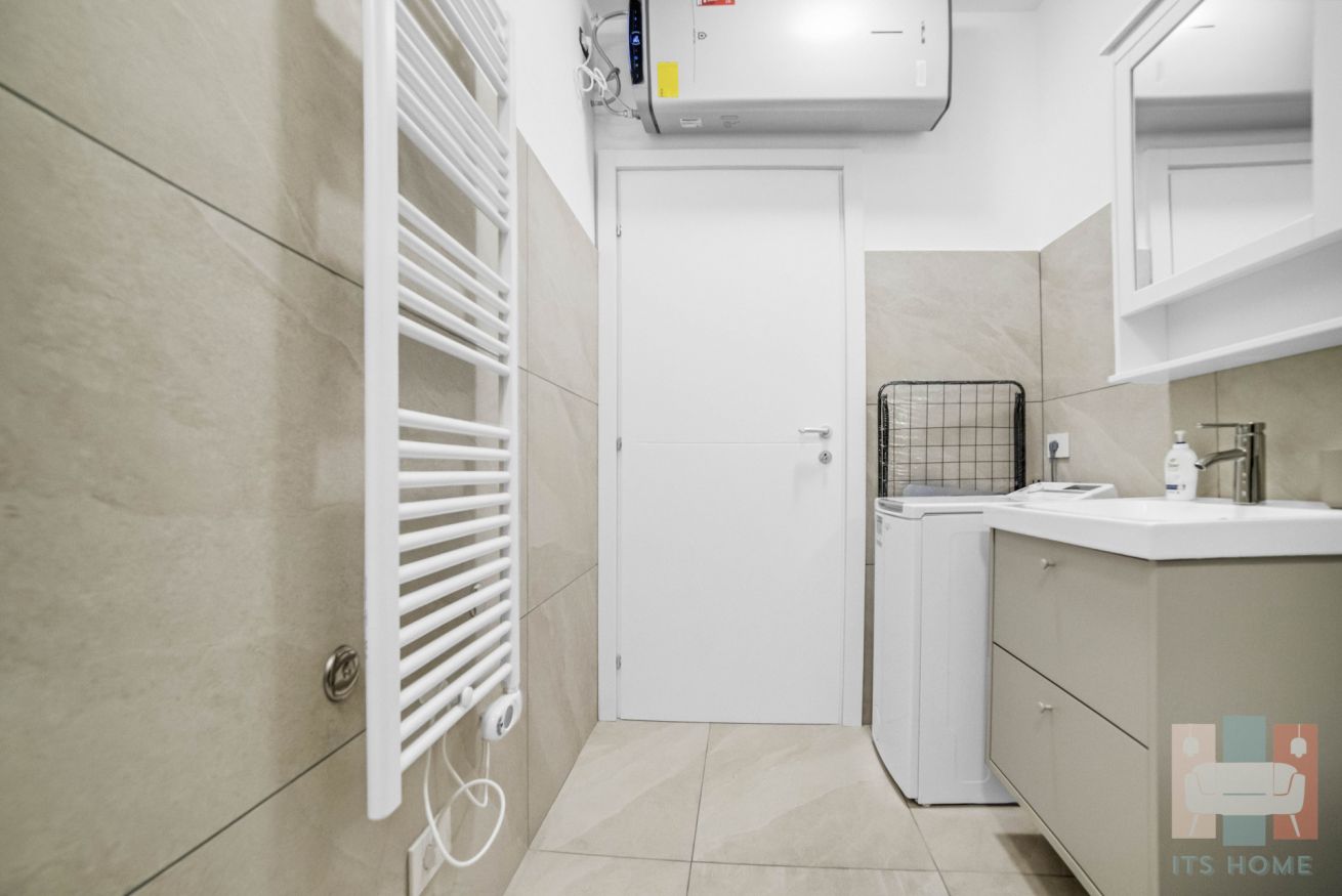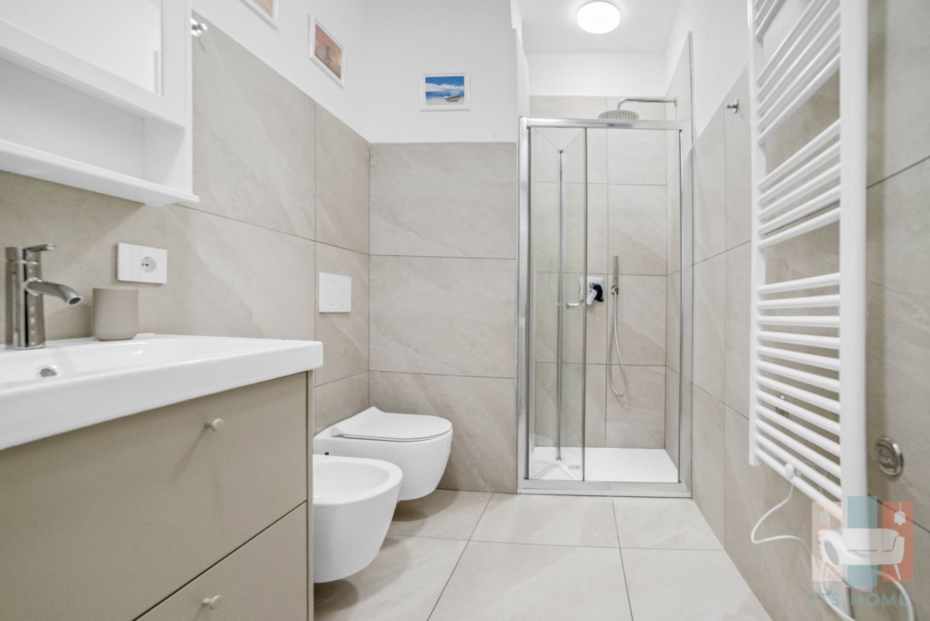 🚿 Bagno moderno con ampia doccia, bidet, WC, asciugacapelli, lavatrice e kit cortesia.
